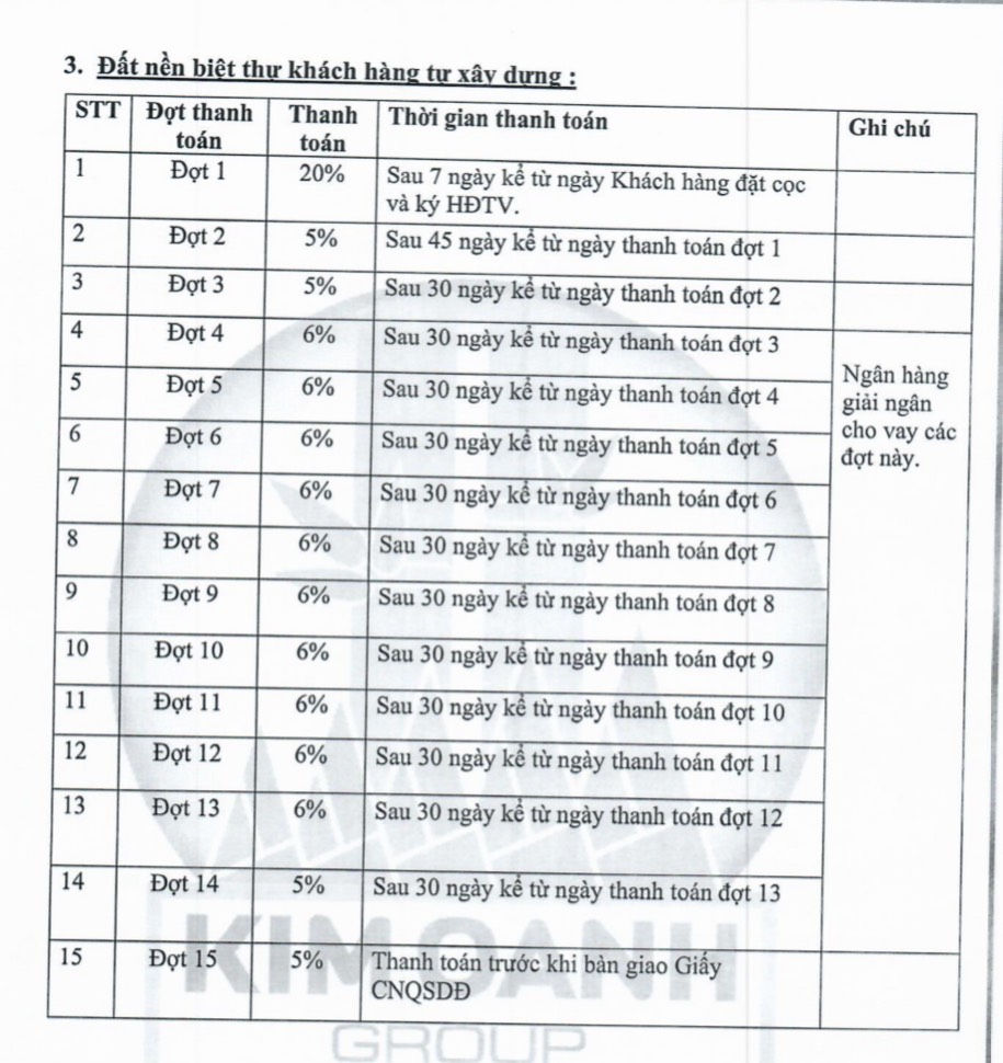 • Chiết khấu 21%/năm/số tiền thanh toán sớm