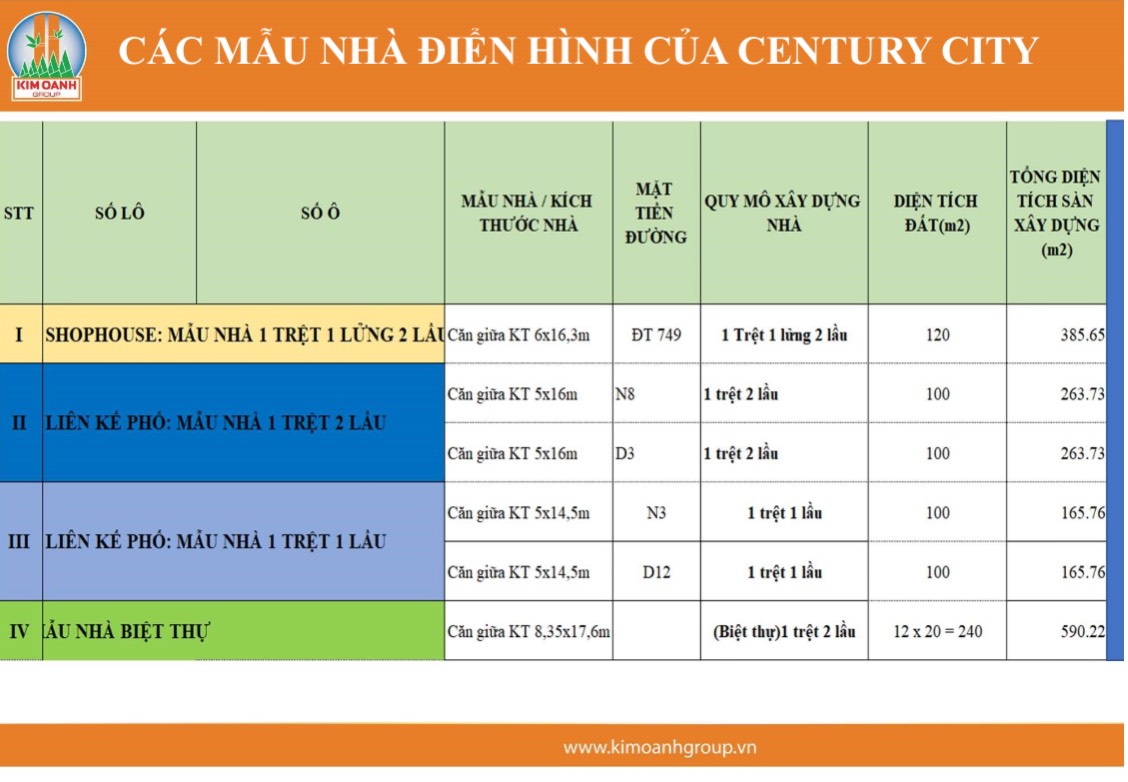 CÁC MẪU NHÀ ĐIỂN HÌNH TẠI CENTURY CITY